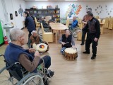 우리 원에 입소중인 남자 어르신들이 아주 신이 났어요.^^소고, 북, 장구의 장단에 맞춰 한 어르신께서 노래를 불러주셨습니다.아주 신이 나 보이죠? ^^국악 노래를 신나게 부르시는 어르신과 장단에 맞춰 연주하는 어르신들의 합작품^^직…